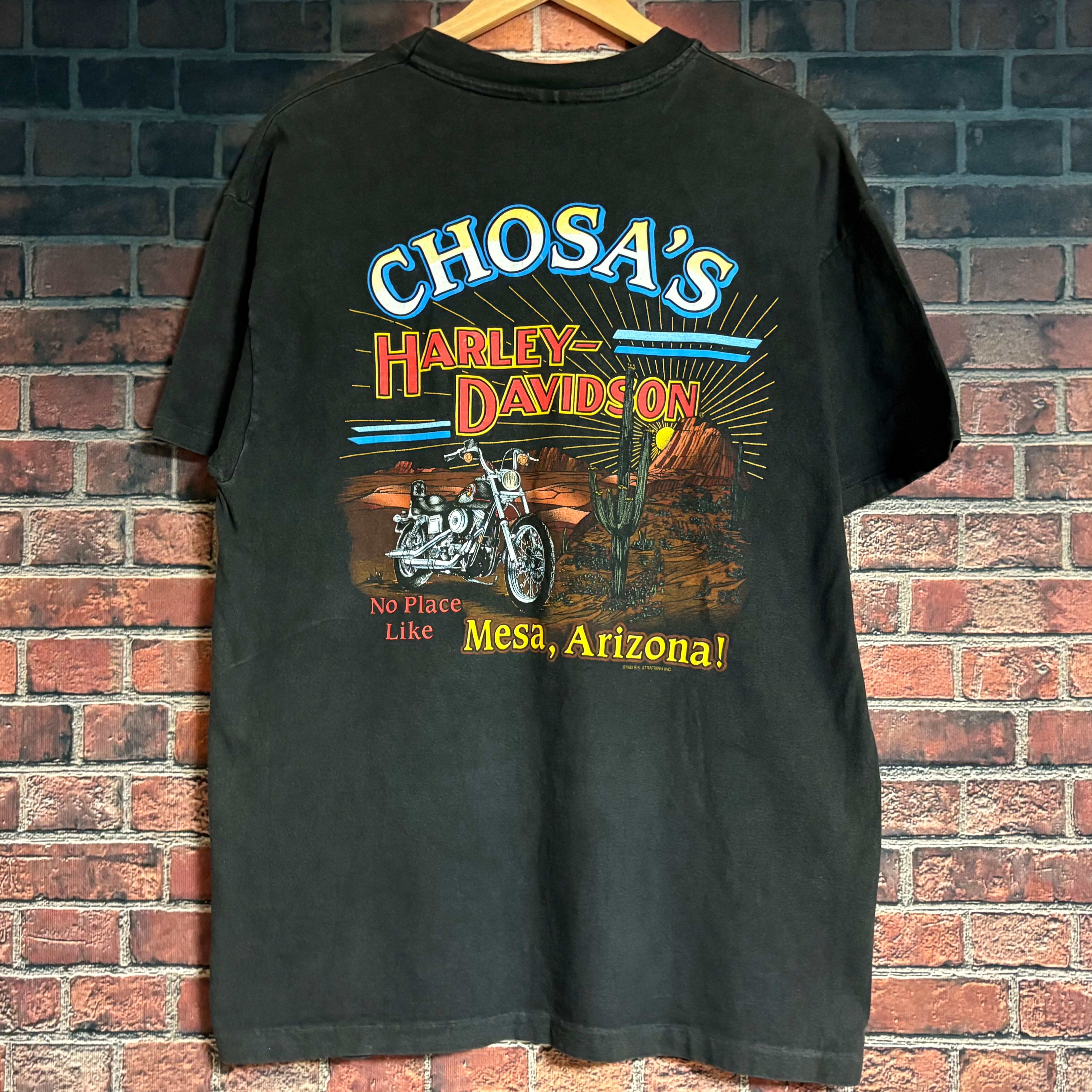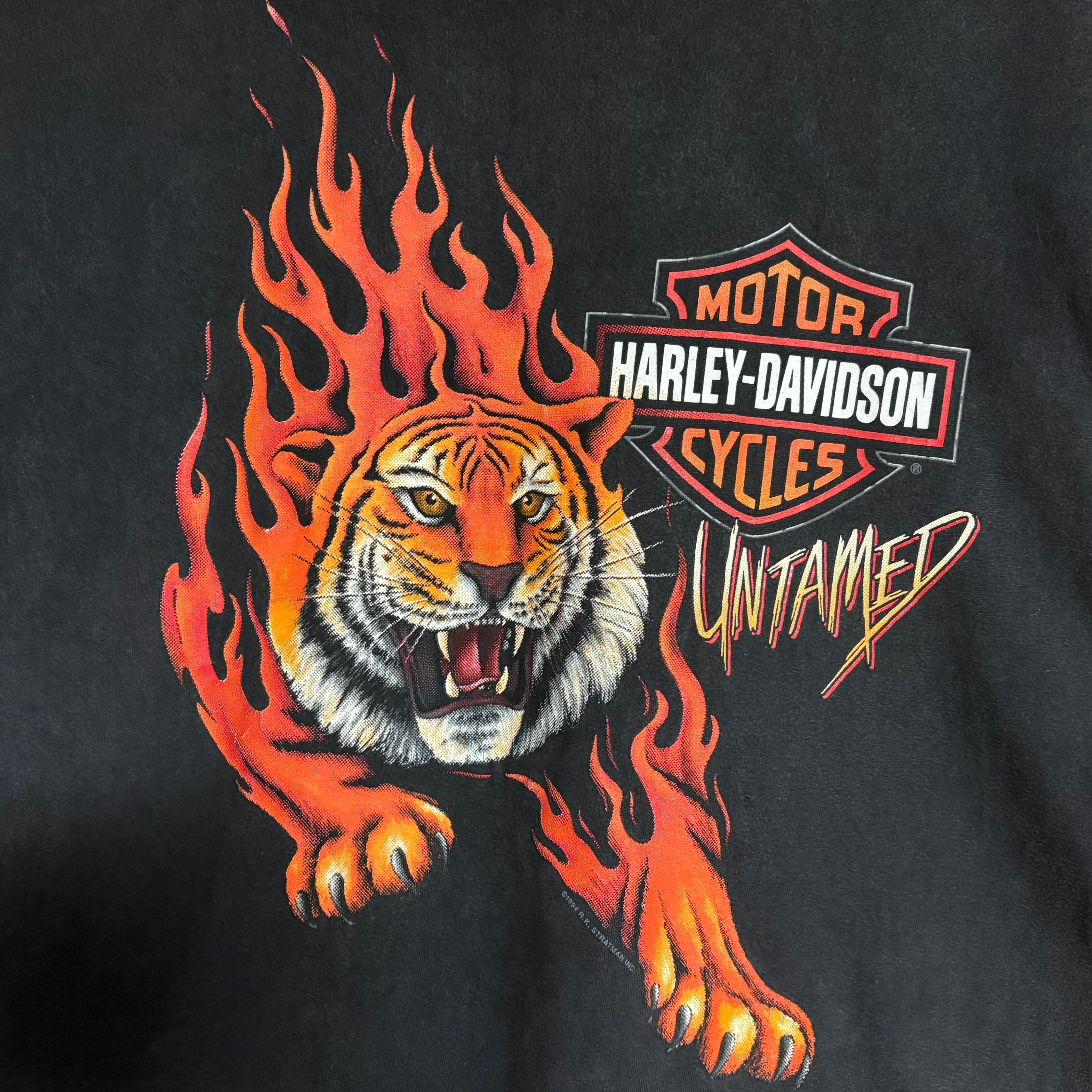 90s ハーレーダビッドソン タイガー フレーム シングルステッチ ブラック Tシャツ L