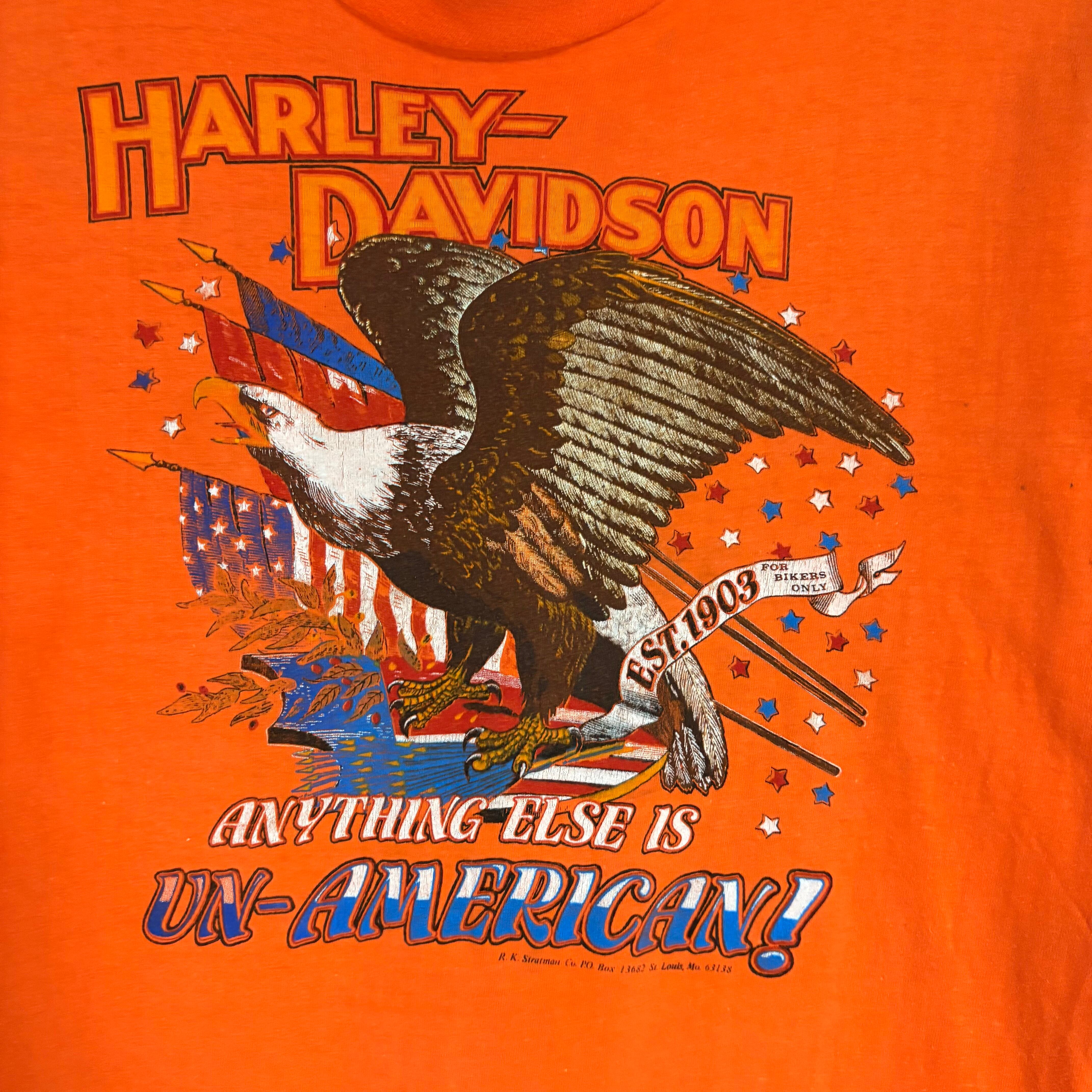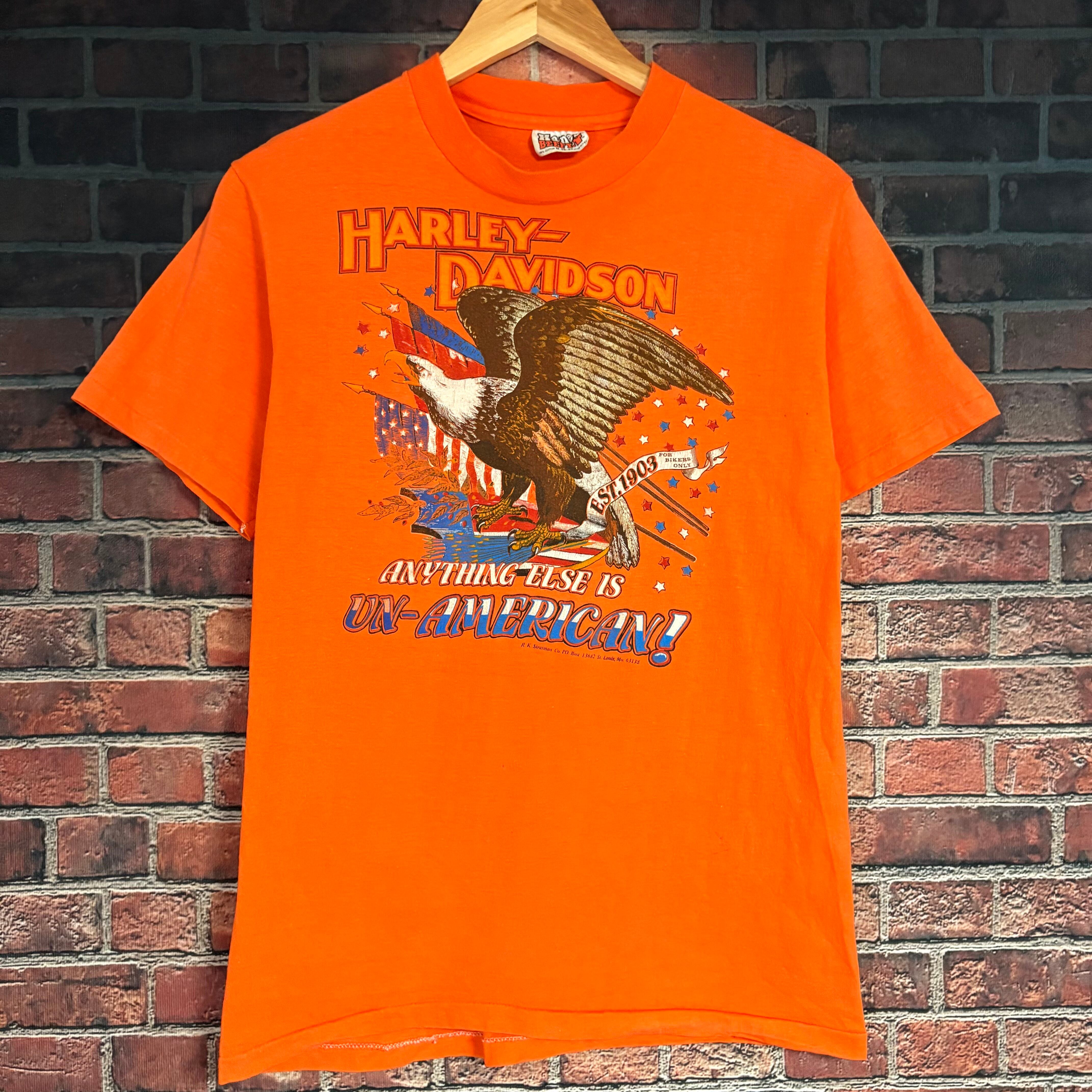70s ハーレーダビッドソン ヘインズ イーグル シングルステッチ オレンジ TシャツM
