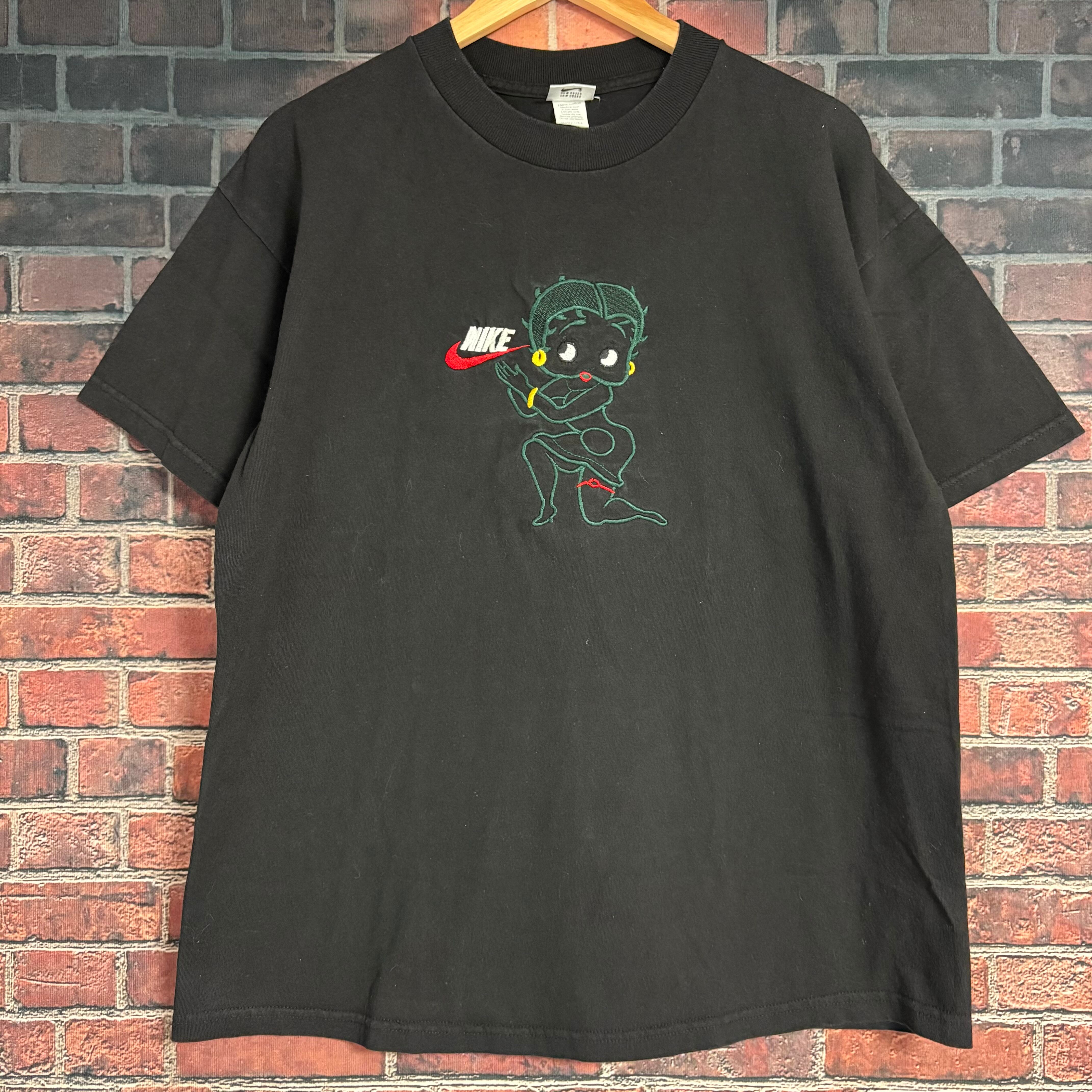 90s ナイキ NIKE ベティブープ 刺繍 スウォッシュ ロゴ ブラック Tシャツ L