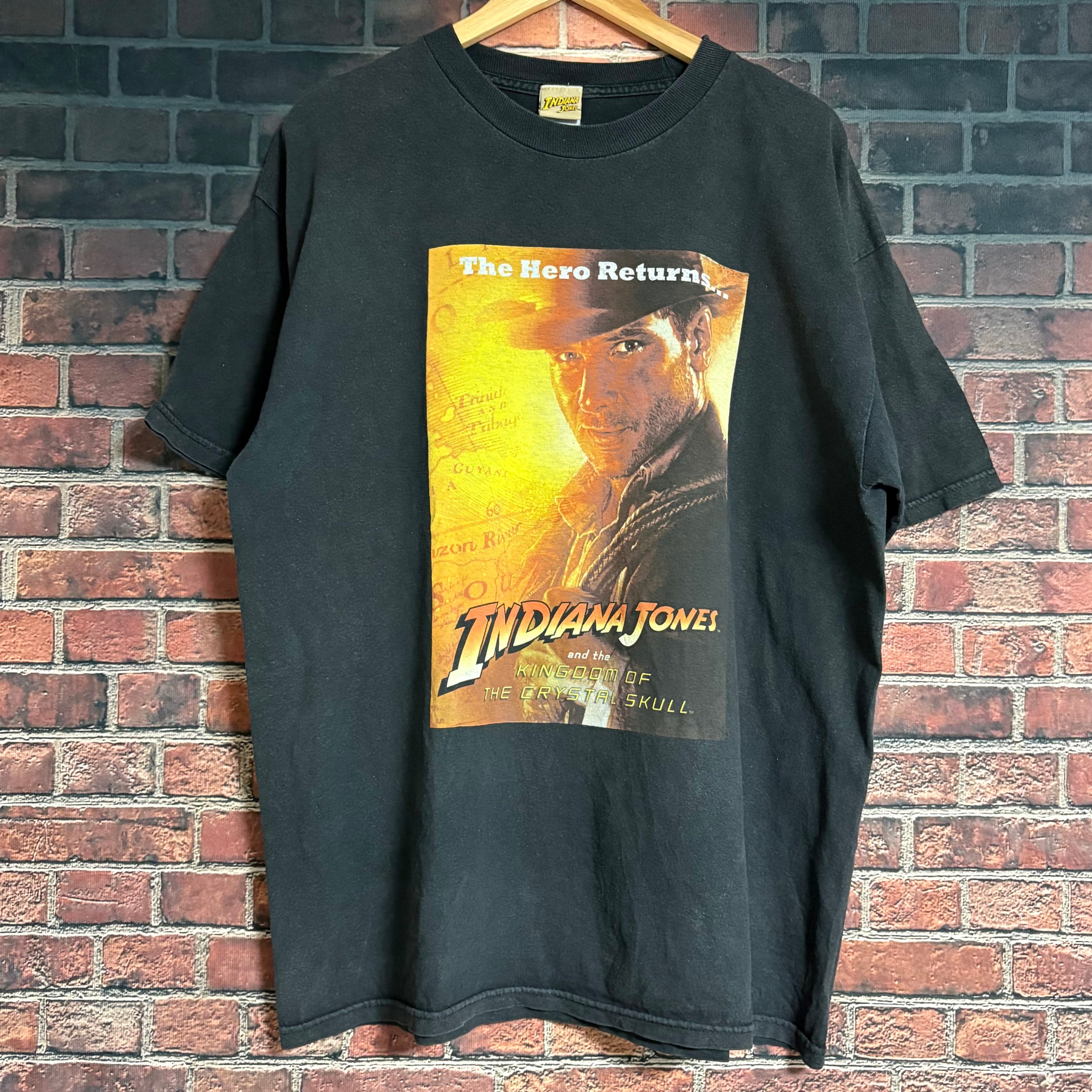 00s インディー・ジョーンズ クリスタルスカルの王国 ハリソンフォード 映画 ムービー ブラック Tシャツ L