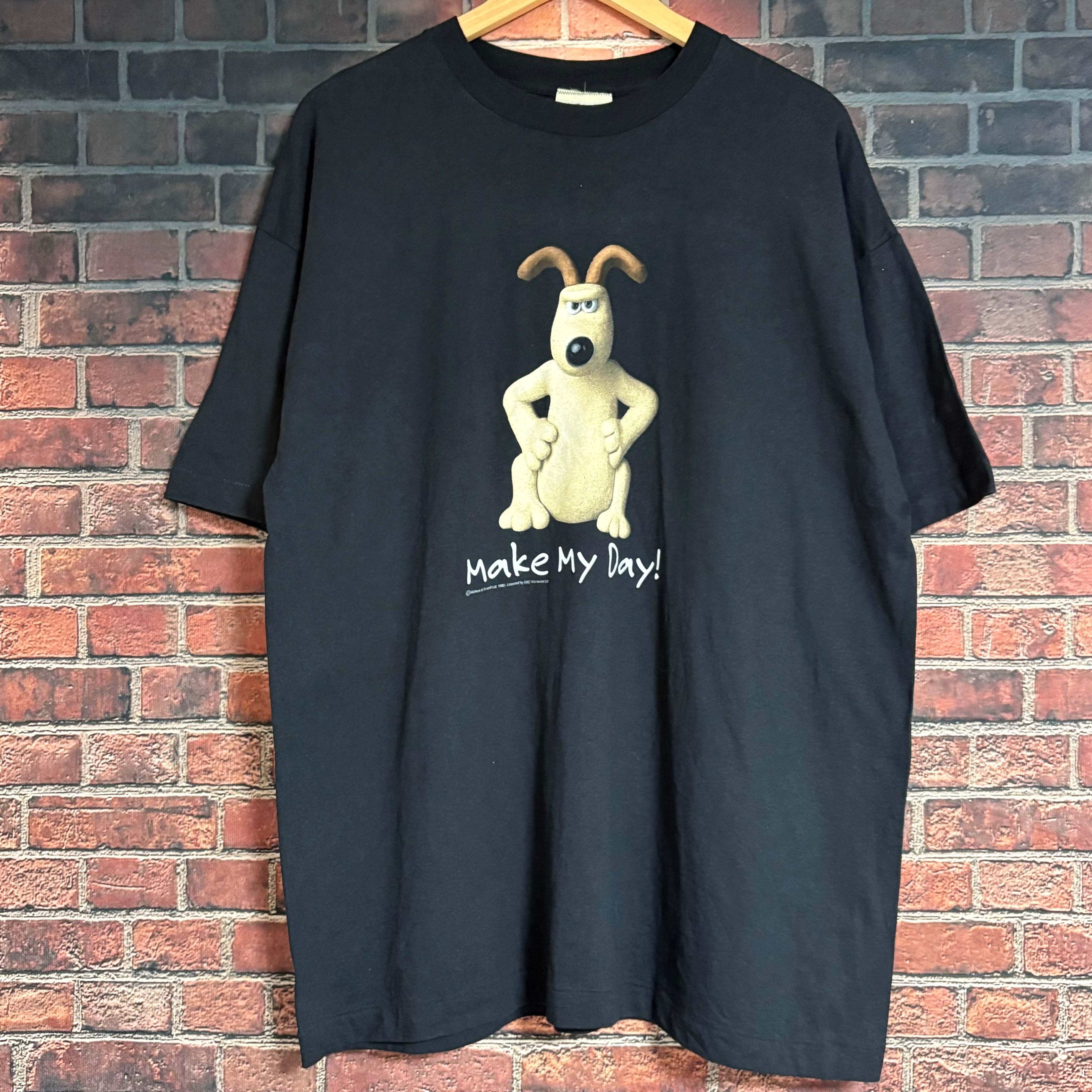 80s ウォレスとグルミット アードマン Make My Day シングルステッチ ブラック Tシャツ XL 1989